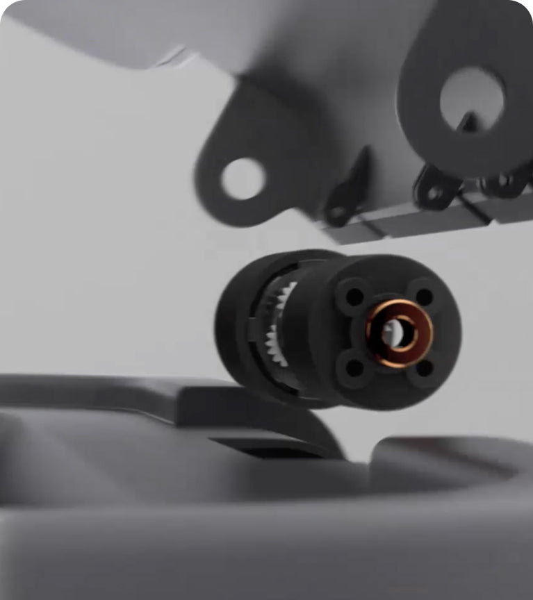 Small, powerful motor fits neatly into the hinge so it’s never seen — and it’s silent enough to be never heard.
