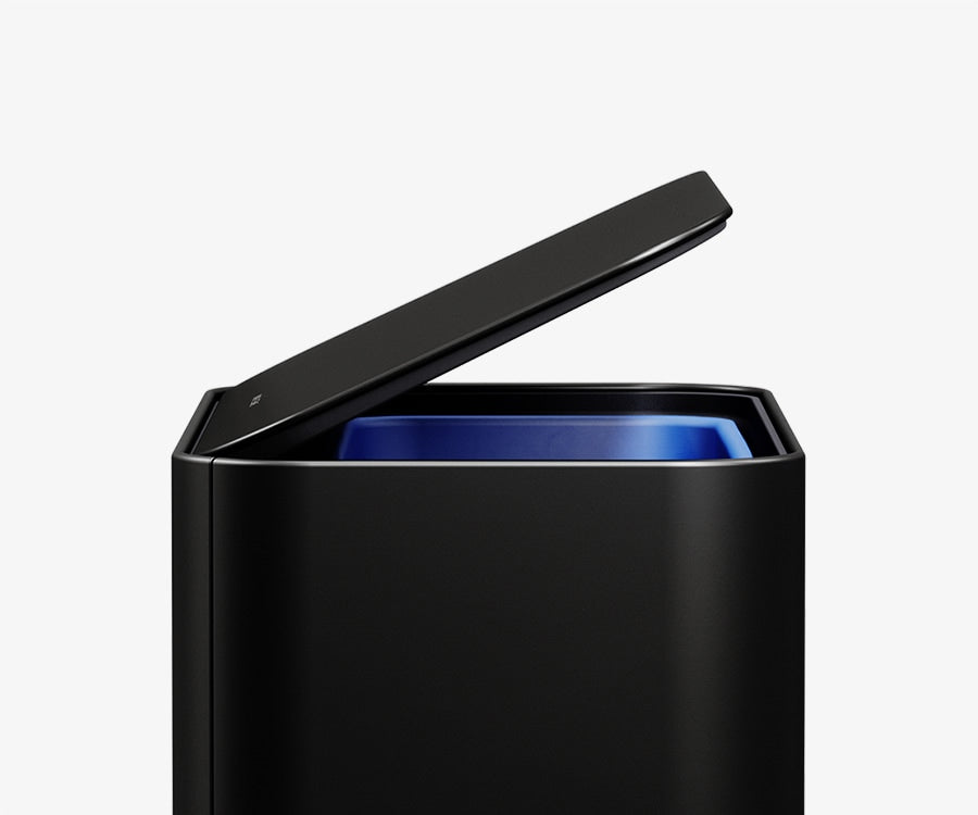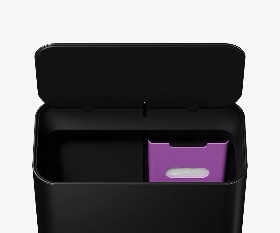 Made from 100% post-consumer recycled plastic, the inner bucket lifts out for quicker liner changes and easy cleaning.