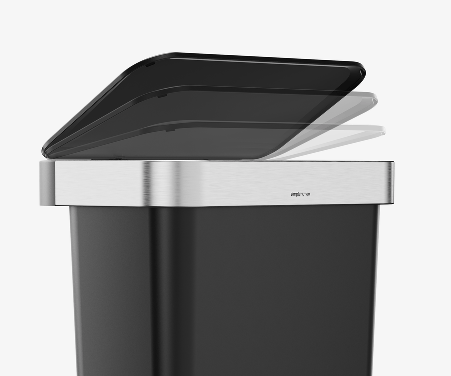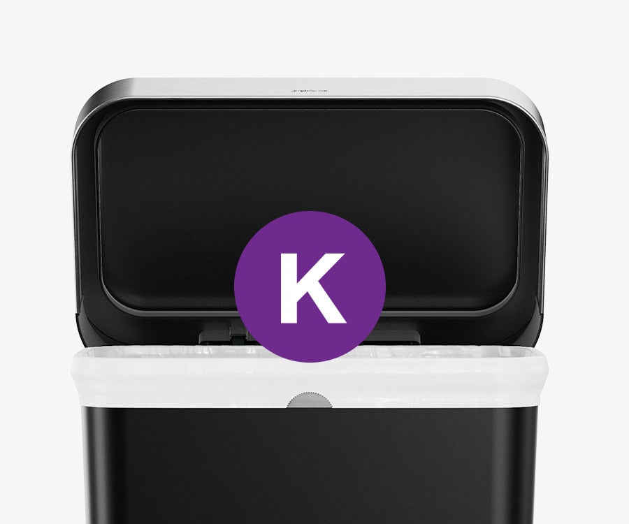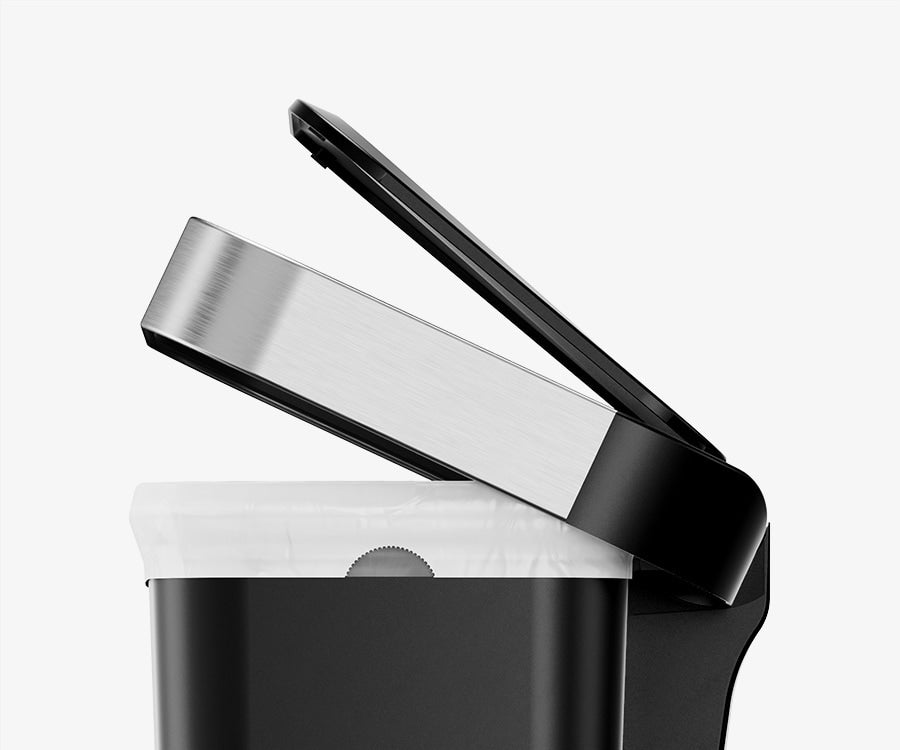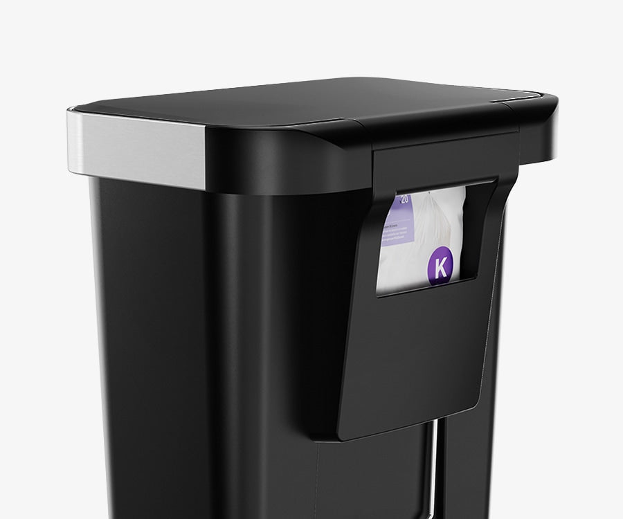Our liner rim system makes trash faster and neater. Simply lift the lid for easy access, then close it to keep the liner tidy and out of sight.