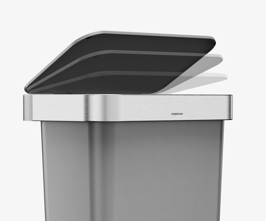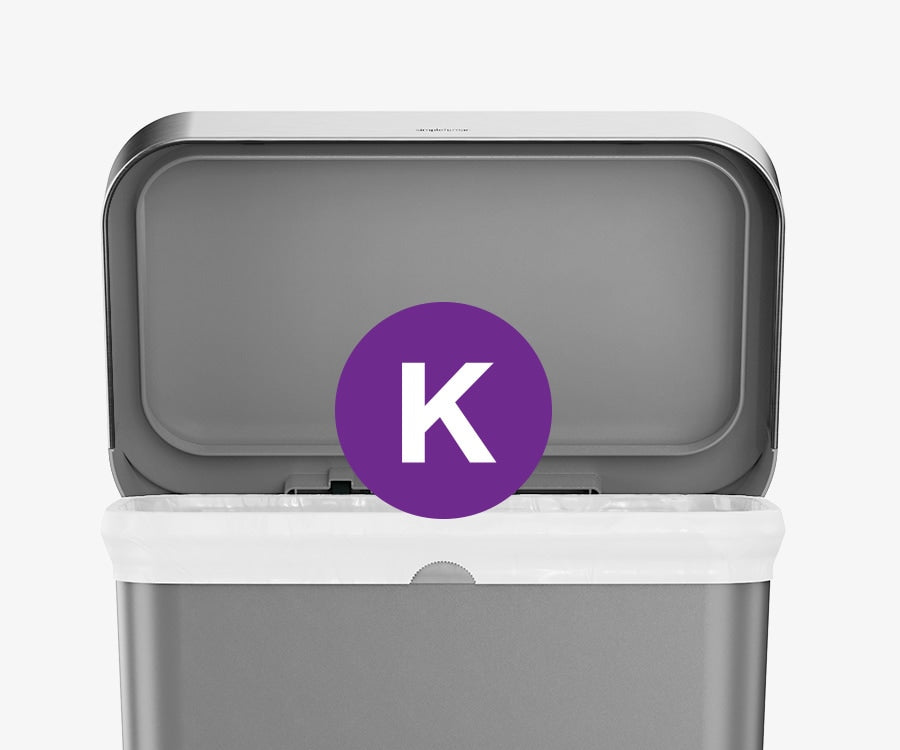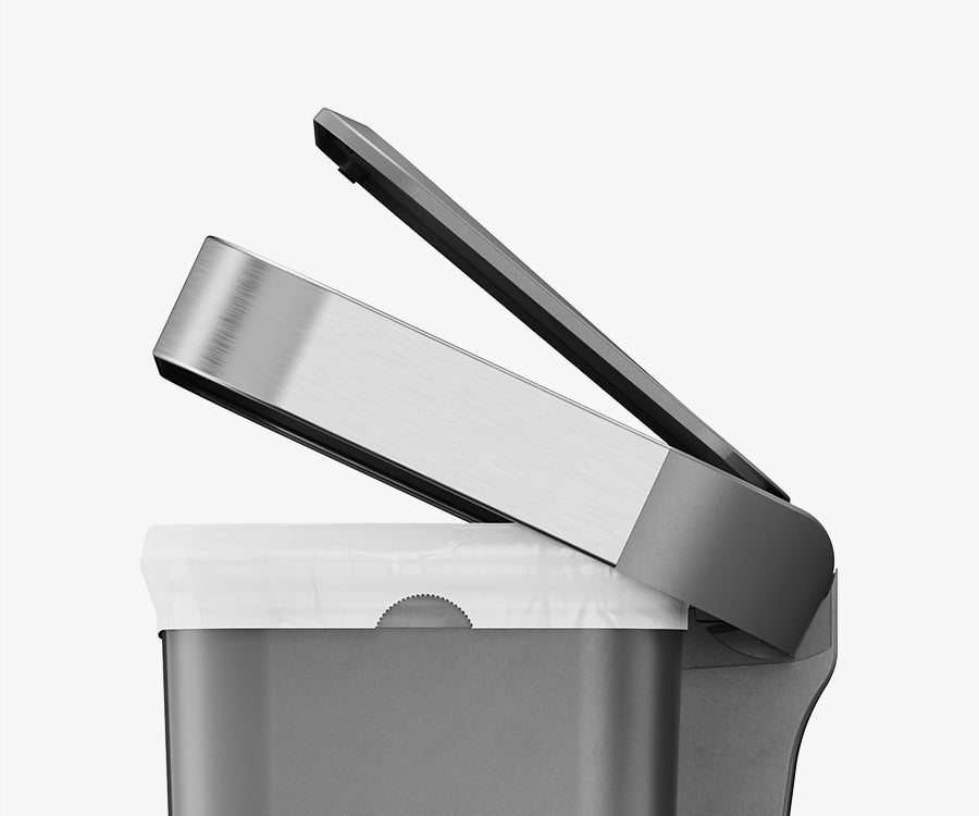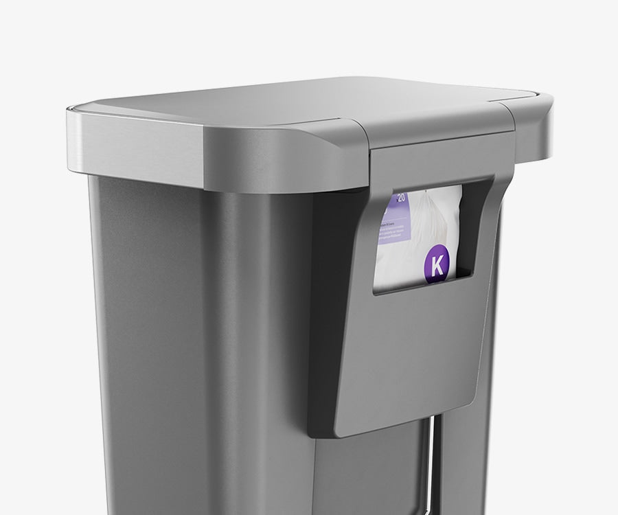 Our liner rim system makes trash faster and neater. Simply lift the lid for easy access, then close it to keep the liner tidy and out of sight.