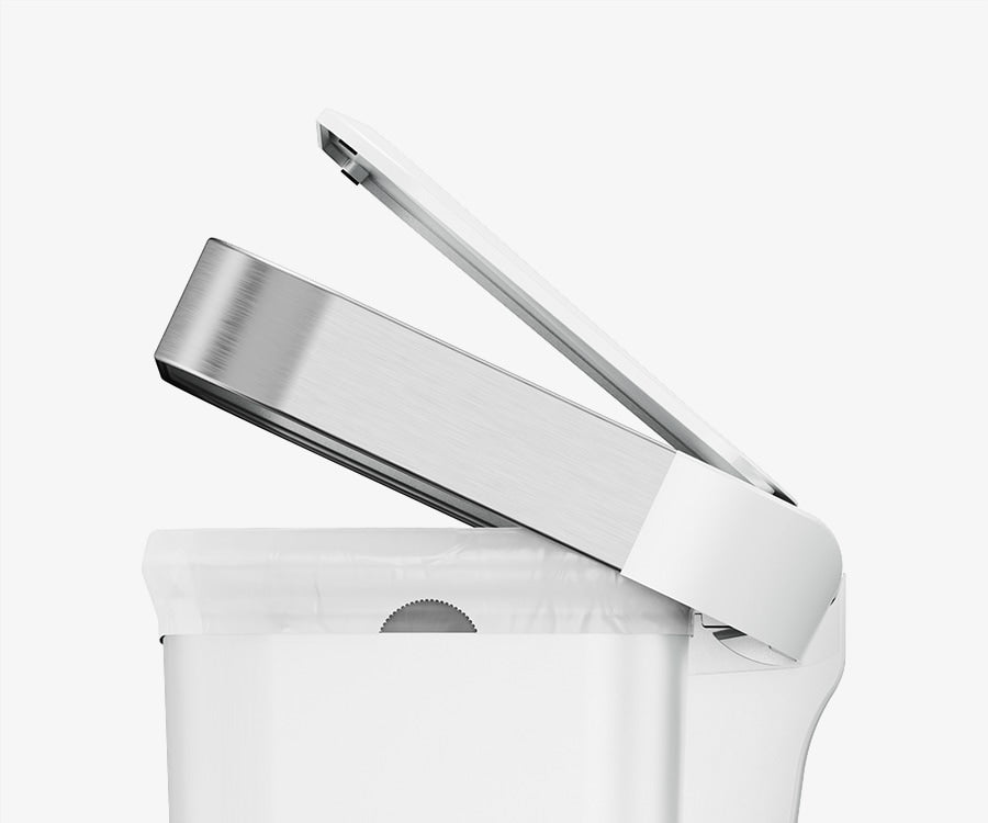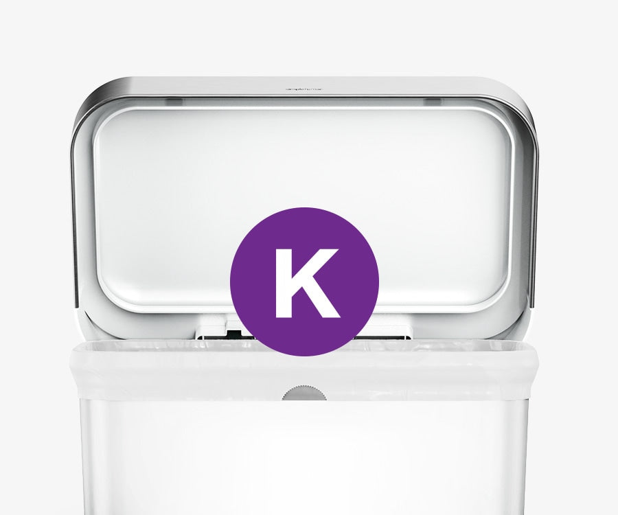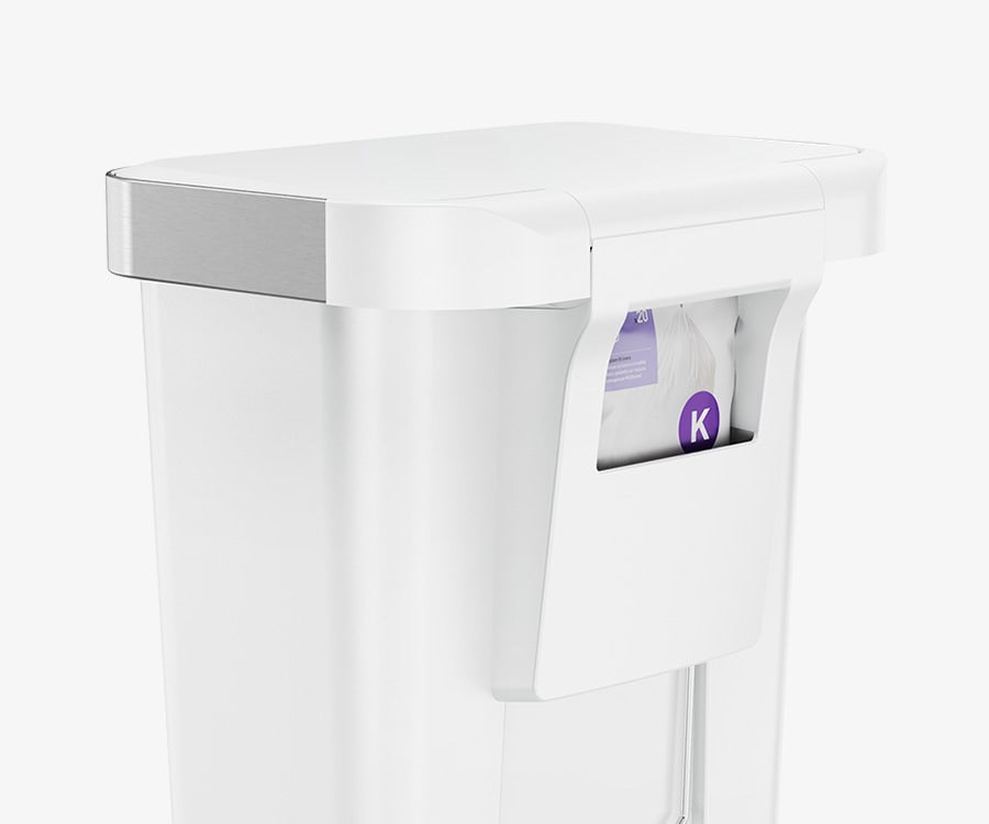 Our liner rim system makes trash faster and neater. Simply lift the lid for easy access, then close it to keep the liner tidy and out of sight.