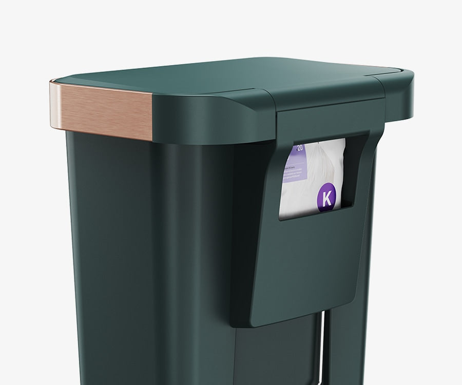 Our liner rim system makes trash faster and neater. Simply lift the lid for easy access, then close it to keep the liner tidy and out of sight.
