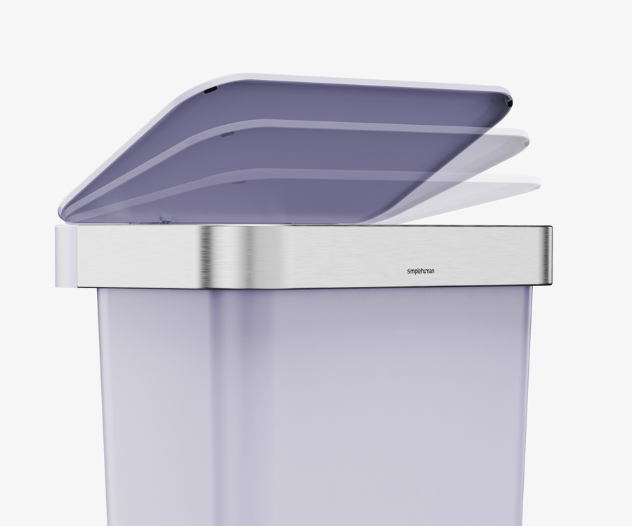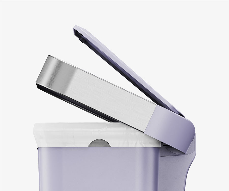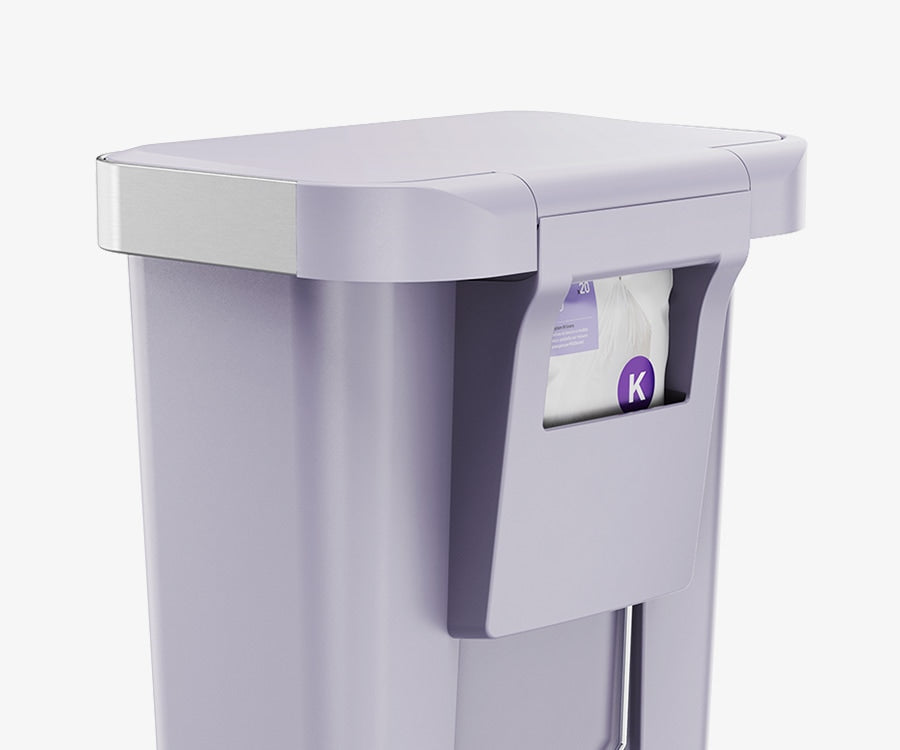 Our liner rim system makes trash faster and neater. Simply lift the lid for easy access, then close it to keep the liner tidy and out of sight.
