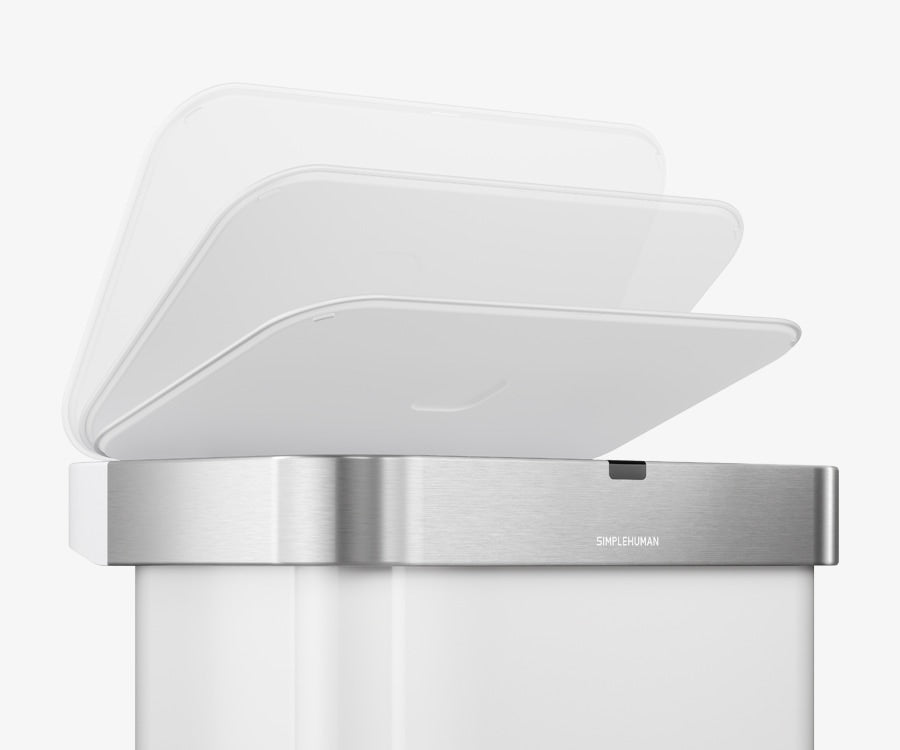 Our liner rim system makes trash faster and neater. Simply lift the lid for easy access, then close it to keep the liner tidy and out of sight.