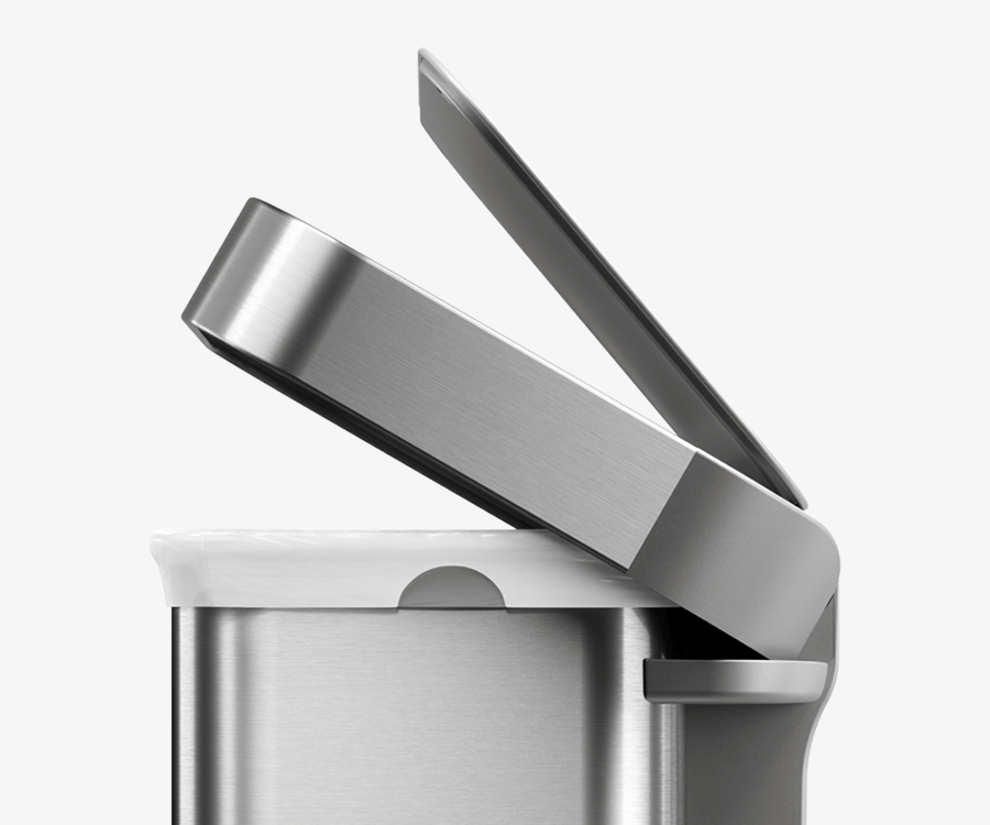 Our liner rim system makes trash faster and neater. Simply lift the lid for easy access, then close it to keep the liner tidy and out of sight.