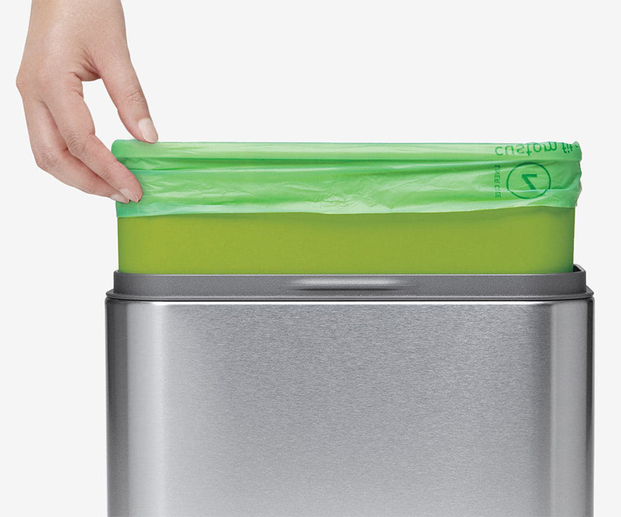 Our code z compostable custom fit liners are tailored to fit our compost caddy perfectly so they don't slip, and they stay neatly hidden when the lid is closed.