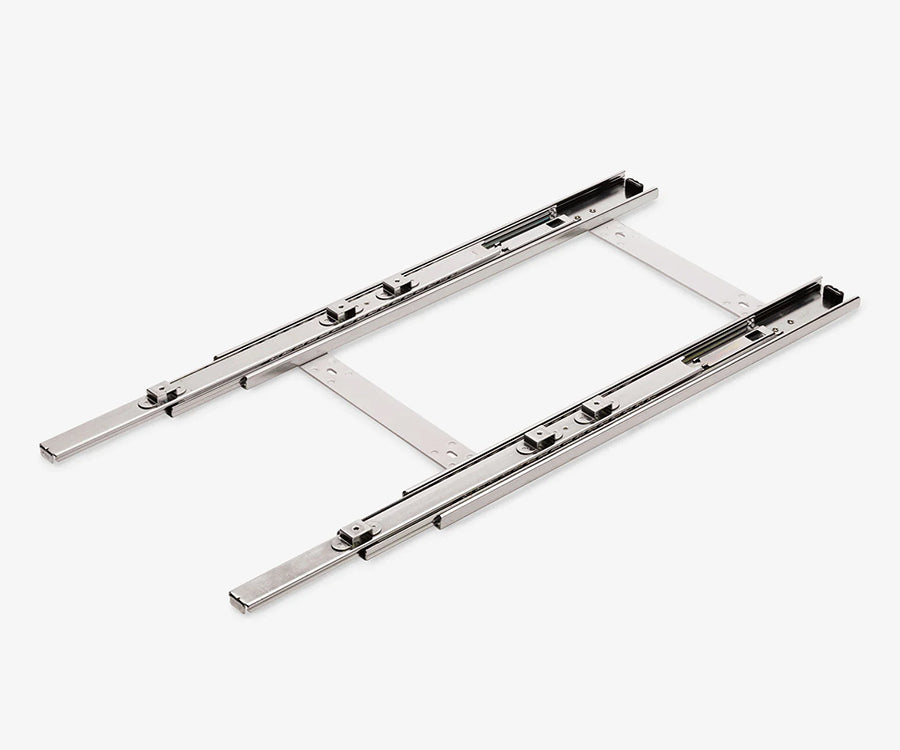 Grab the steel handle to pull the organizer out of the cabinet quickly.