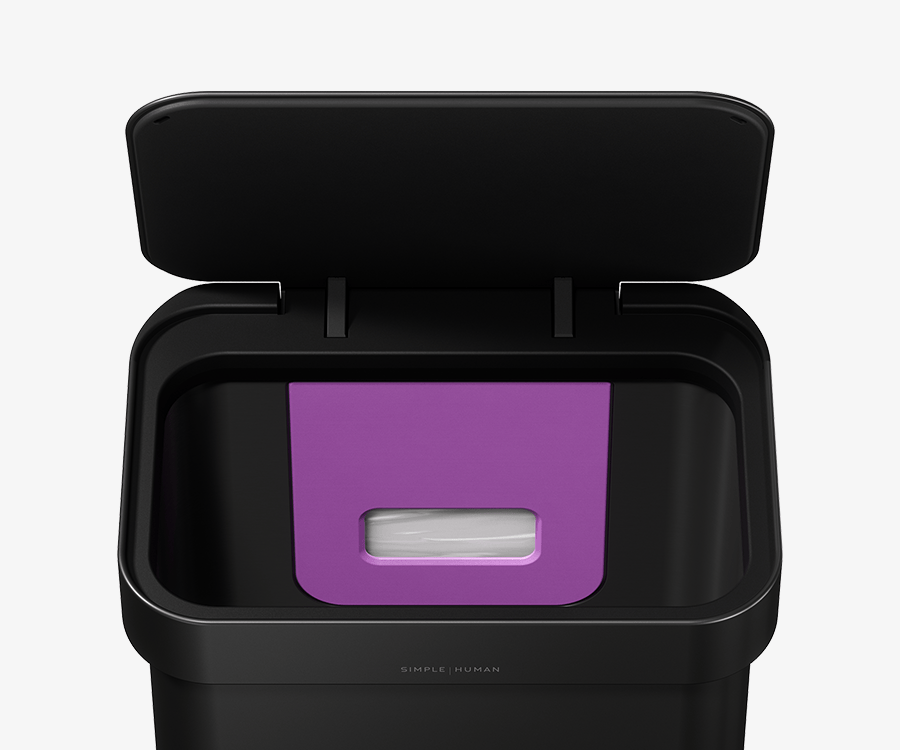 Our liner rim system makes trash faster and neater. Simply lift the lid for easy access, then close it to keep the liner tidy and out of sight.