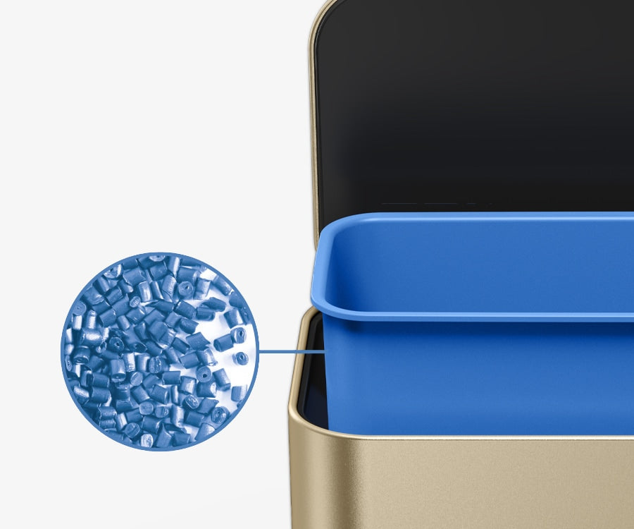 Made from 100% post-consumer recycled plastic, the inner bucket lifts out for quicker liner changes and easy cleaning.