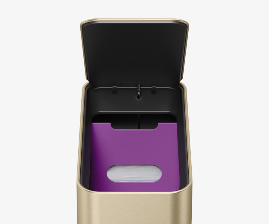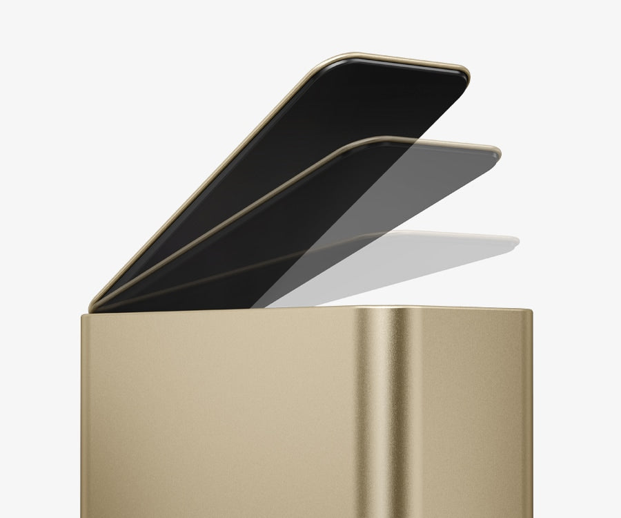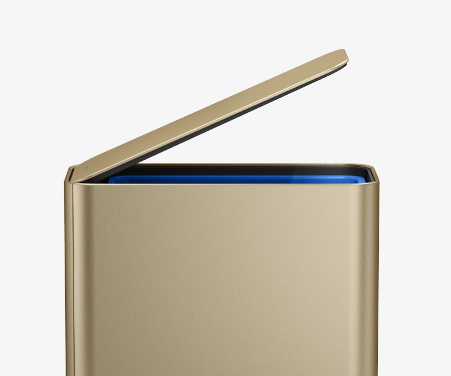 Thoughtfully engineered to stay out of the way without compromising performance. The slim profile shape and invisible hinge makes this can perfect for tight spaces. It fits neatly against walls, while the strong steel pedal and silent-close lid ensure effortless, hands-free use.
