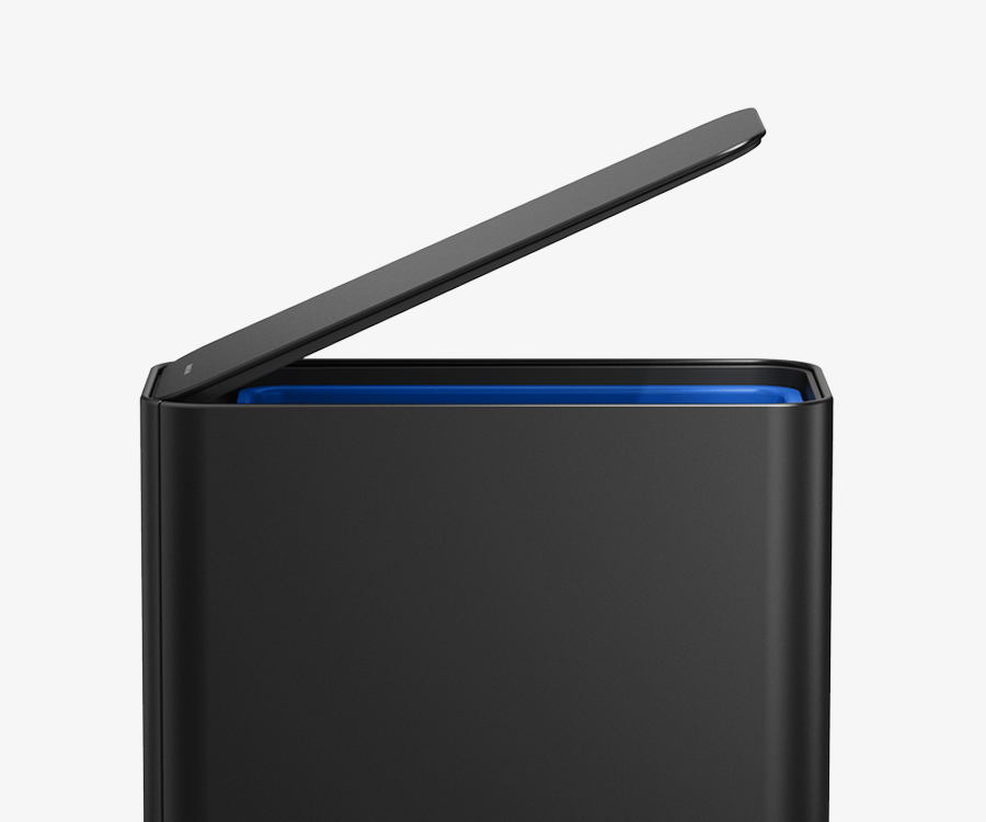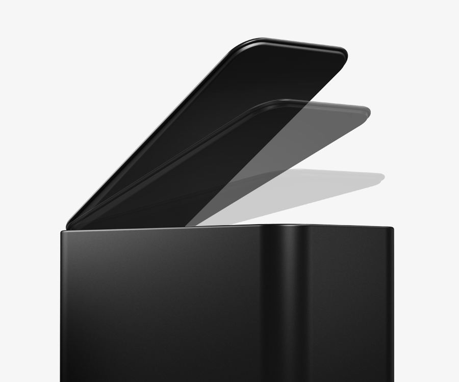 Thoughtfully engineered to stay out of the way without compromising performance. The slim profile shape and invisible hinge makes this can perfect for tight spaces. It fits neatly against walls, while the strong steel pedal and silent-close lid ensure effortless, hands-free use.