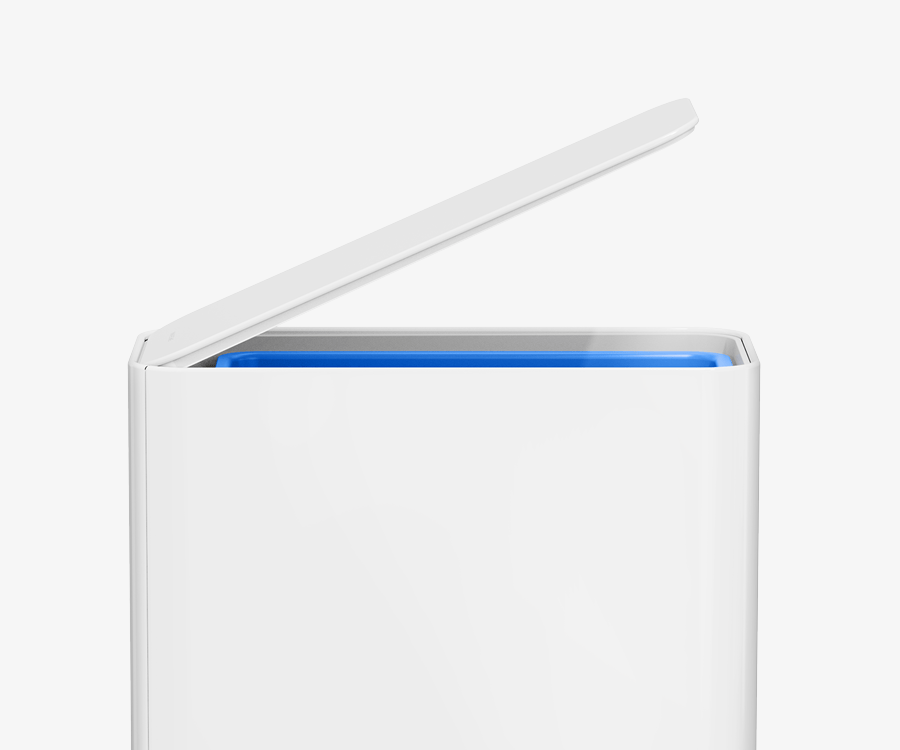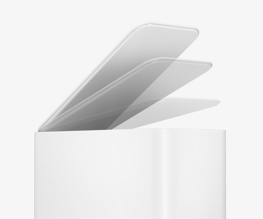 Thoughtfully engineered to stay out of the way without compromising performance. The slim profile shape and invisible hinge makes this can perfect for tight spaces. It fits neatly against walls, while the strong steel pedal and silent-close lid ensure effortless, hands-free use.