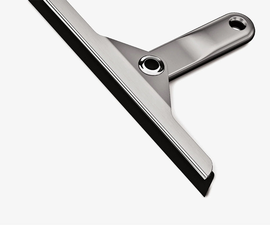 Weighted handle and precisely angled blade for a smooth glide across glass surfaces.