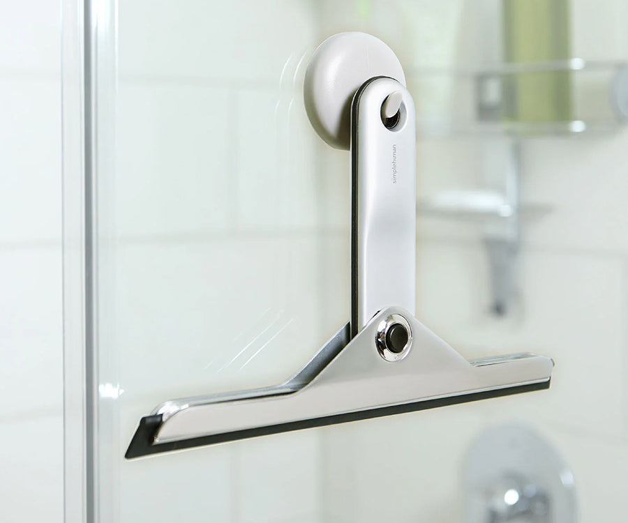 Includes a suction cup to hang the squeegee on the wall or shower door.